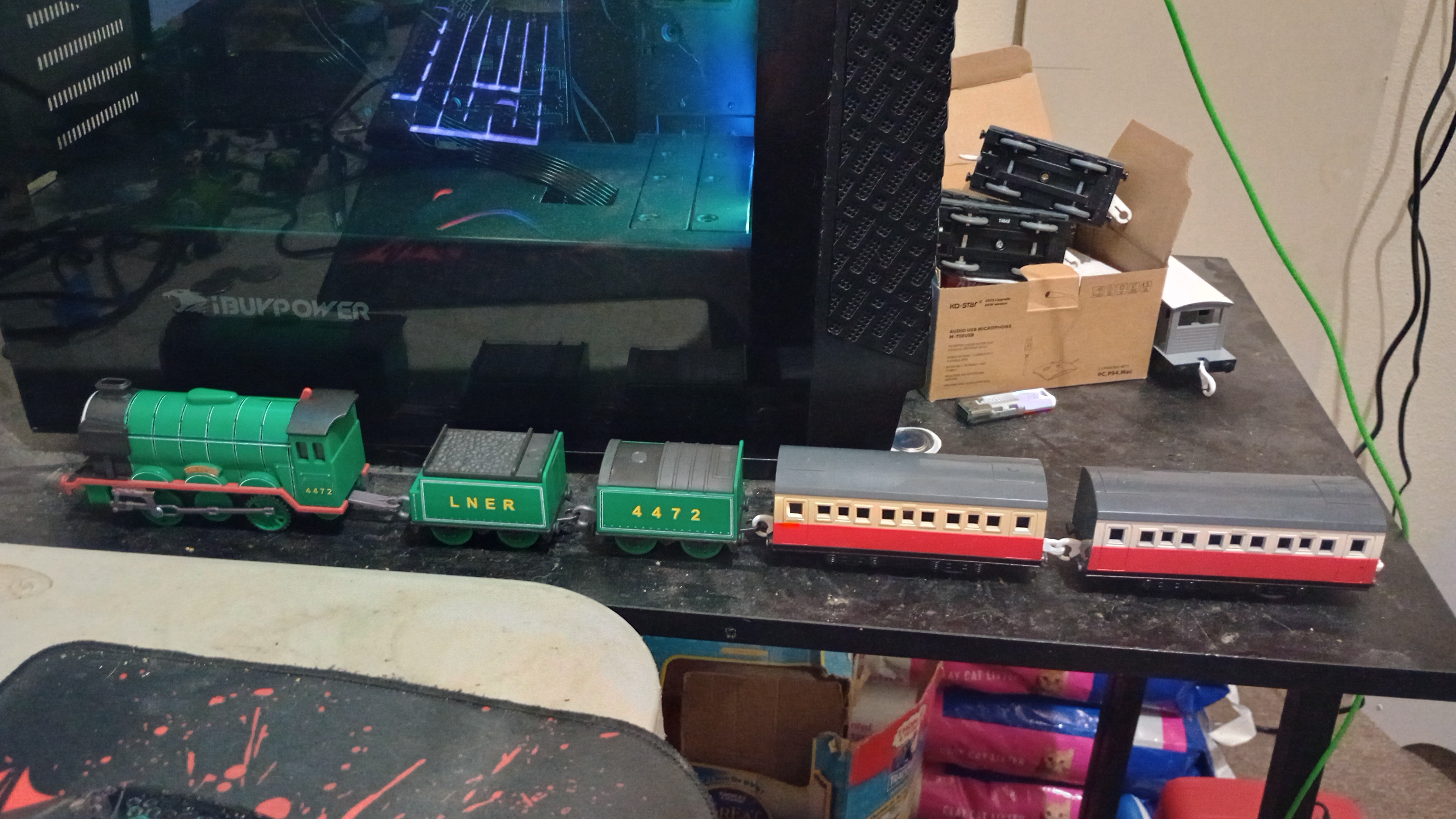 if possible, could some of you be able to send me a picture or video of TM2 Flying Scotsman with TOMY Express Coaches behind him? i just want to know how well they scale with him and how they look. i used to own a express coach but it was sunfaded and it shattered 🙁