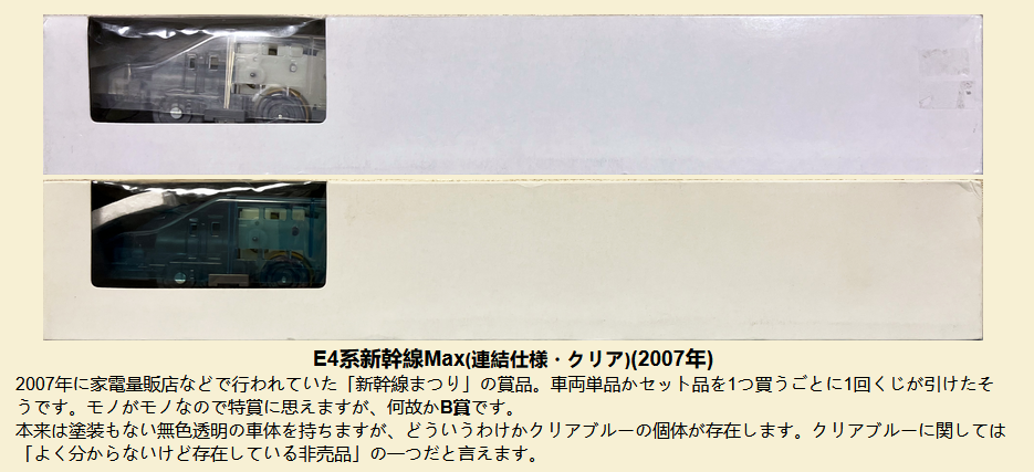 It looks to me that in each store, the first hundred customers that bought a qualifying item got a lottery ticket. Of those one hundred tickets just one won a train case and three won the E4 Max. If we knew how many participating stores there were…….but we don’t. Yodobashi and Bic Camera are both mentioned, and they both have quite a lot of branches, but even so I think this must be a pretty rare item, and a very good buy on your part. ¥6,500 plus fees etc.