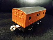 That refreshment coach is a somewhat rare Trackmaster item. @[deleted], it says it has a Trackmaster model under the Merchandise section of the page. Very few images of it exist, and there's a certain minimum image quality required on the Wikia, so that could be why there's no picture in the gallery for it. It was only available in the "Rosie's Fun Fair Special" Trucks & Track pack, and was quickly discontinued. Of course, it's far from the rarest thing in the world, but not including products released by TOMY, you've got one pretty rare Trackmaster item, and in very good condition! I have seen it multiple times on eBay before, but every one of those times, the pictures showed that the stickers had suffered from fading, peeling, and ripping.