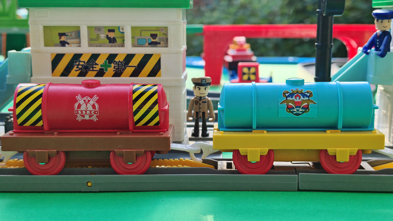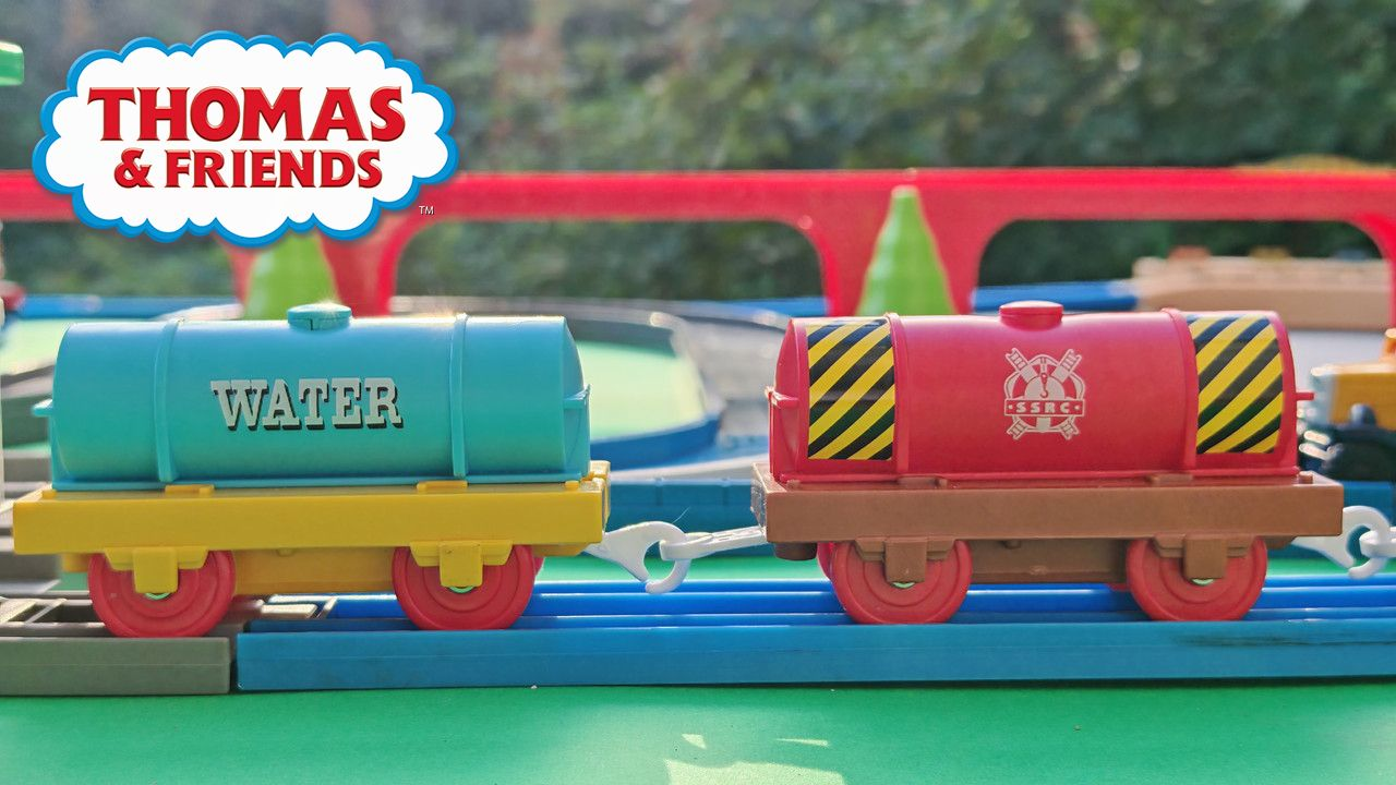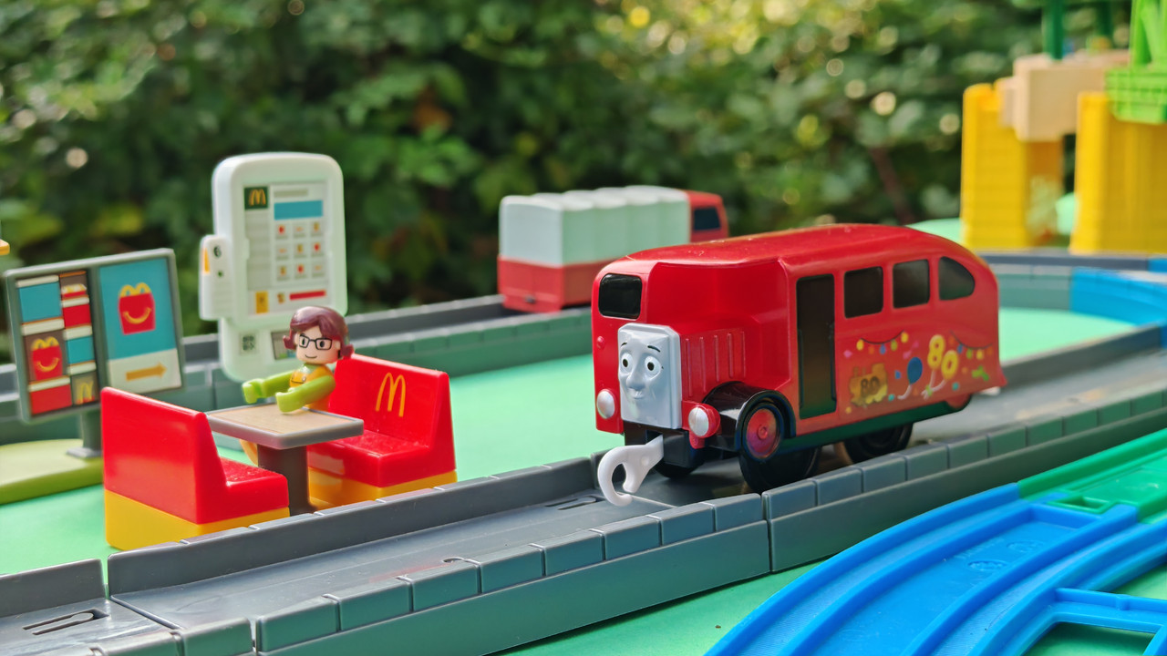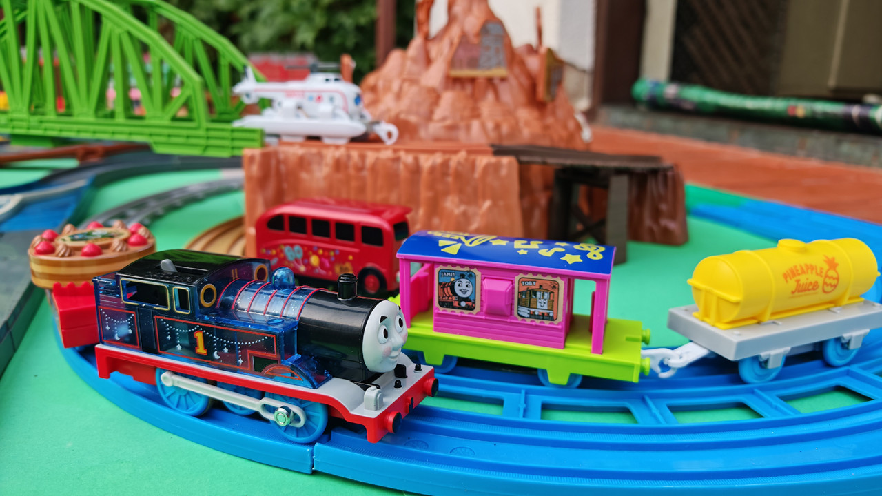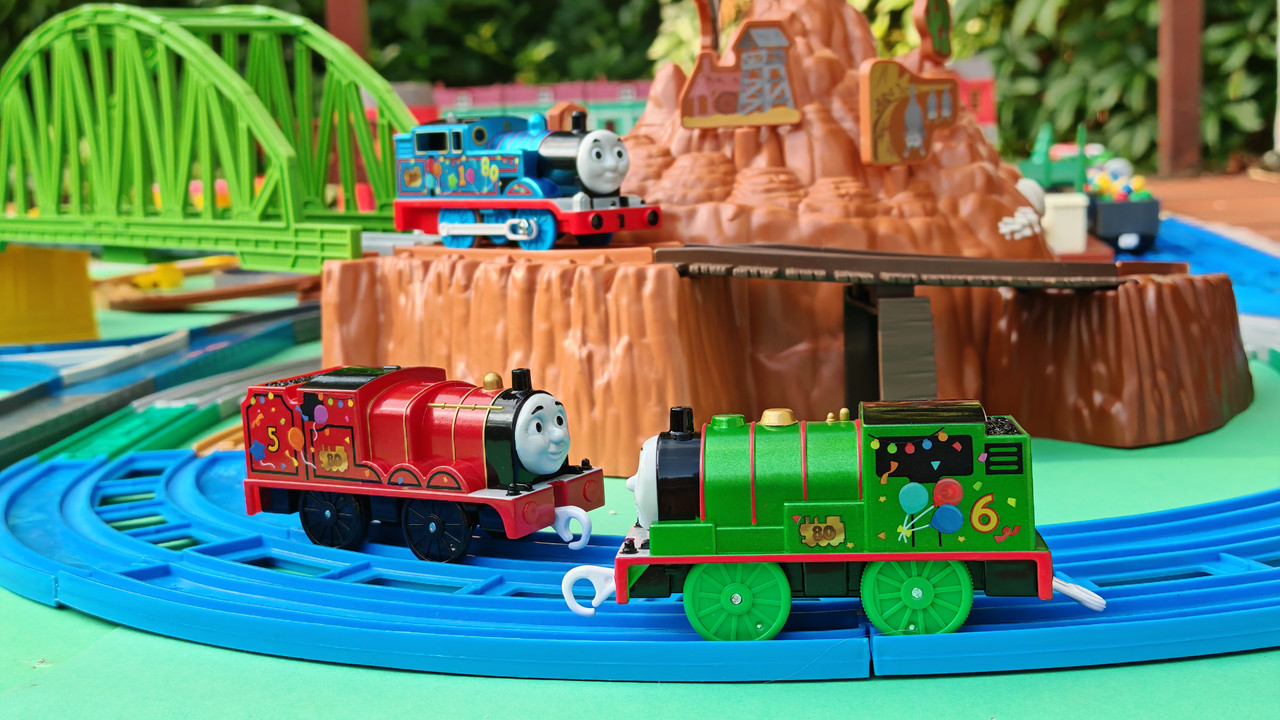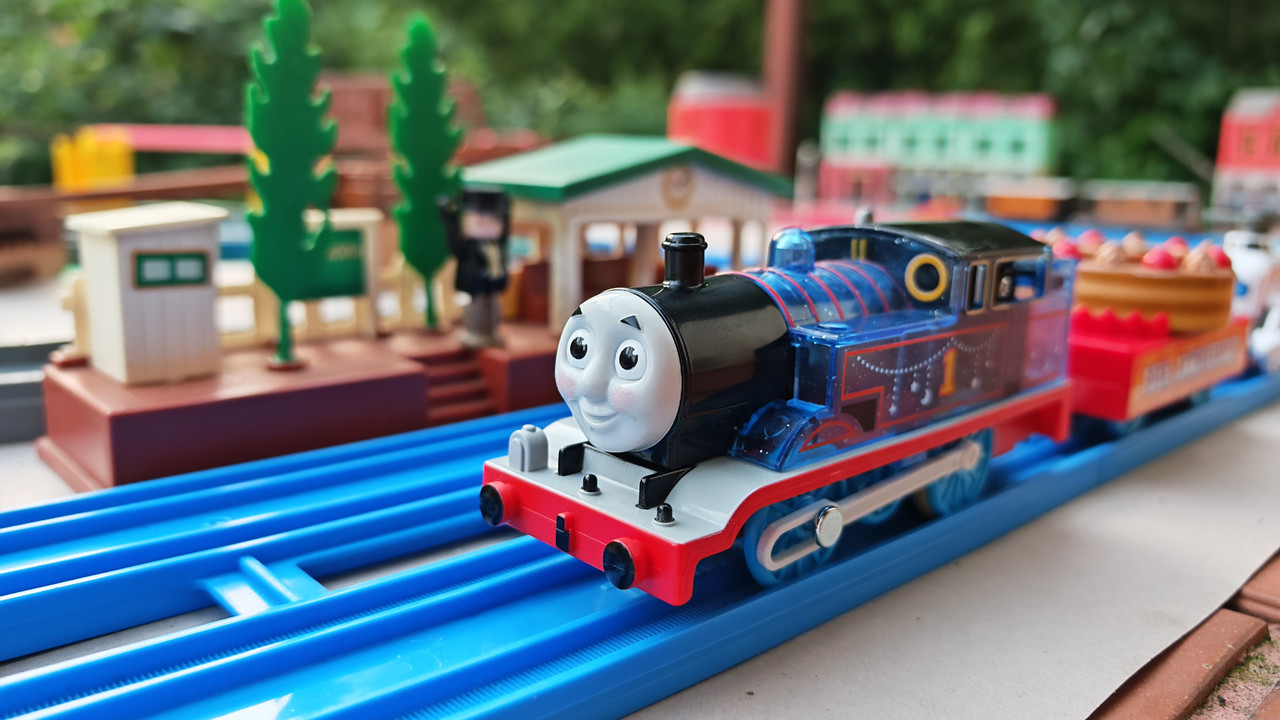 The stations seen in the video, the “Plarail Island Platform Kit,” are also realistically designed to fit the Plarail Real Class trains. One station kit, however, consists of a platform the length of two standard Plarail tracks, but Plarail Real Class trains are 2.5 standard tracks long, so in addition to the 4 station elements (each half a standard track length), at least one more needs to be added in order for the train to fully fit into the station. In this video, the main station is set up to contain 6 station elements (a total length of three standard straight tracks).