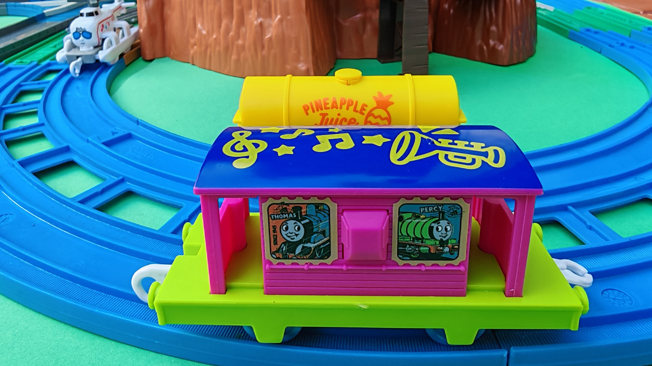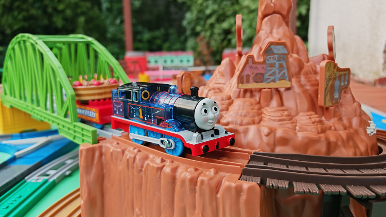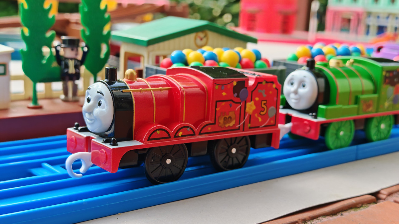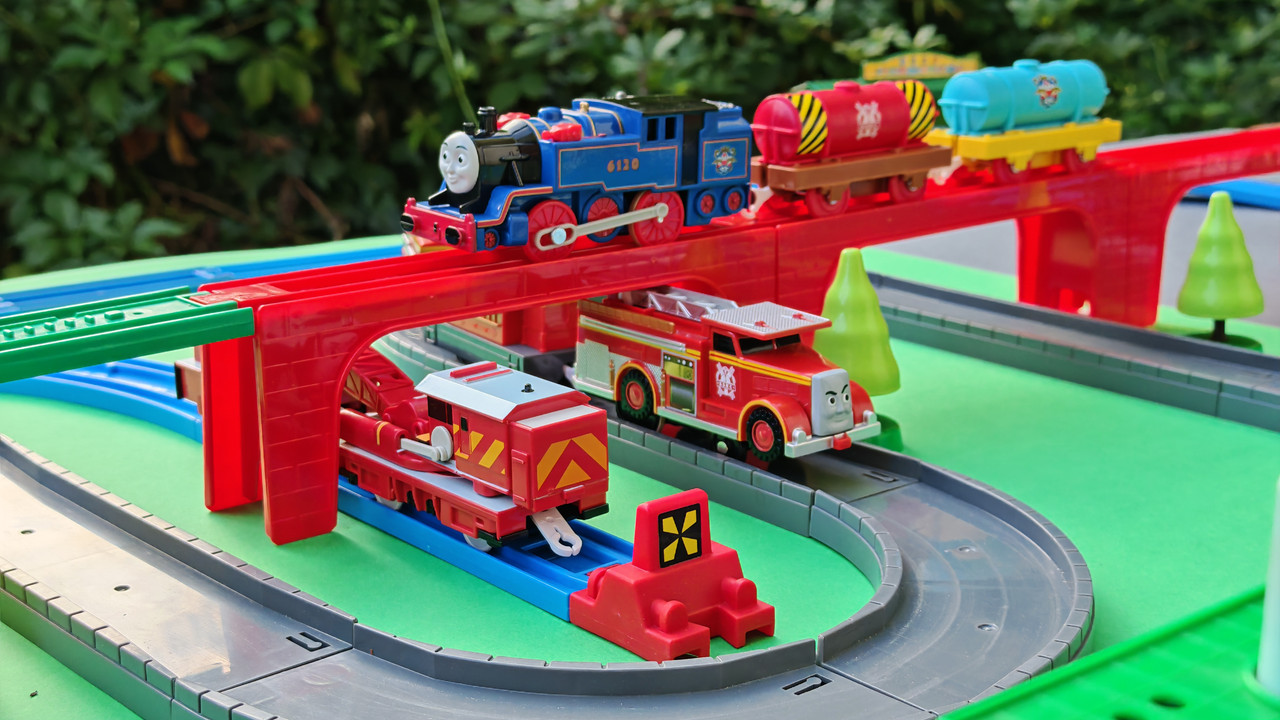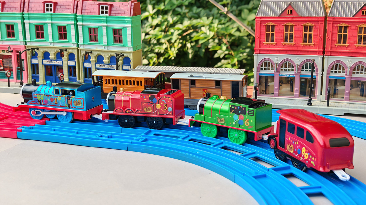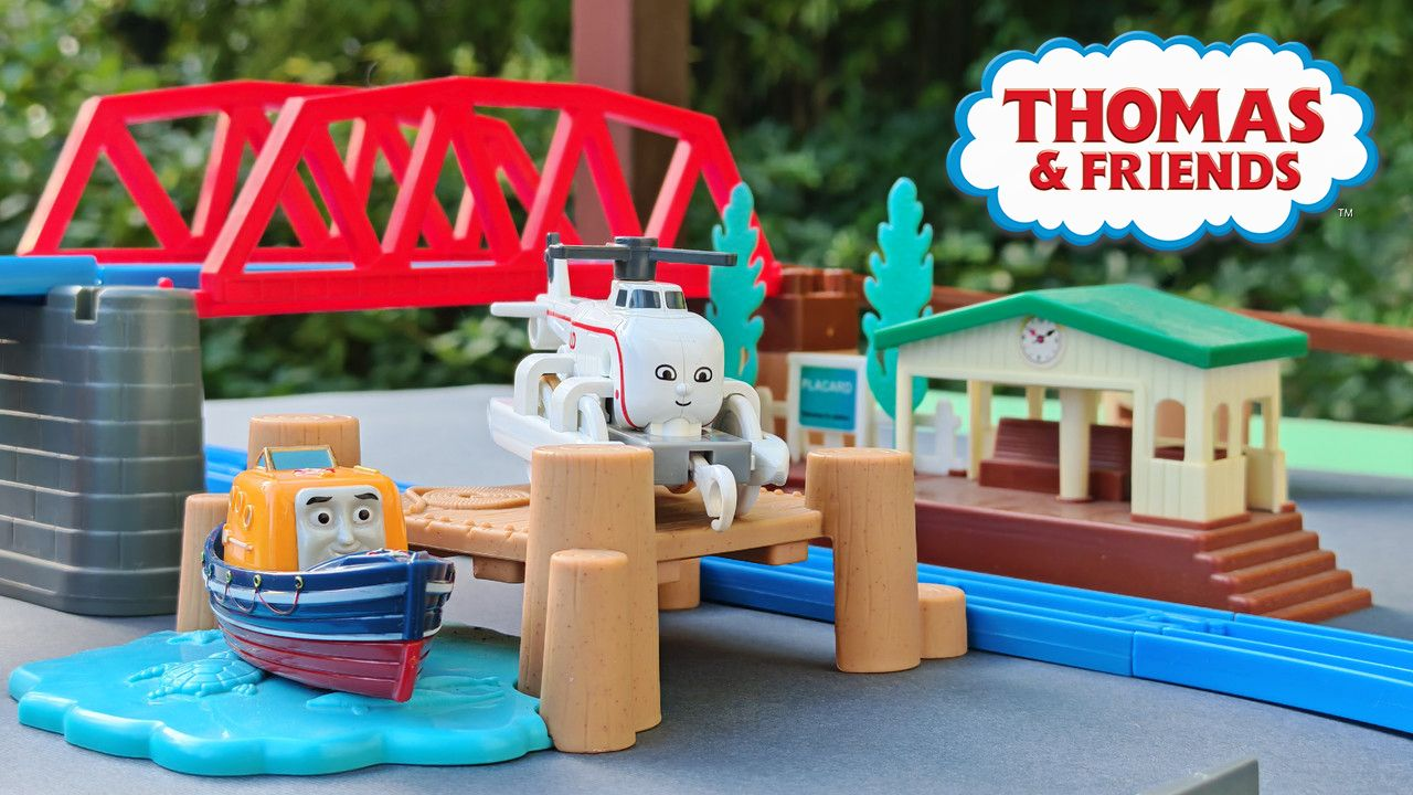 The stations seen in the video, the “Plarail Island Platform Kit,” are also realistically designed to fit the Plarail Real Class trains. One station kit, however, consists of a platform the length of two standard Plarail tracks, but Plarail Real Class trains are 2.5 standard tracks long, so in addition to the 4 station elements (each half a standard track length), at least one more needs to be added in order for the train to fully fit into the station. In this video, the main station is set up to contain 6 station elements (a total length of three standard straight tracks).