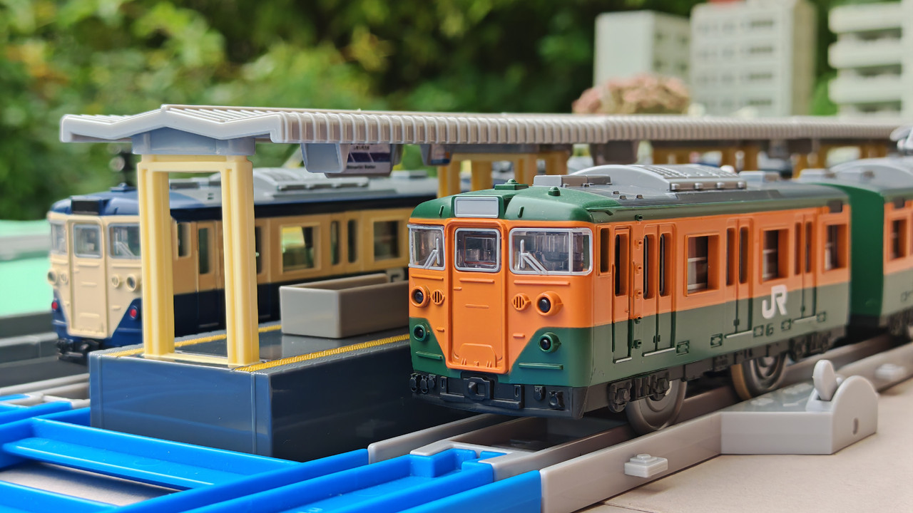 This Plarail model is based on 113 series electric suburban trains in the distinctive Yokosuka blue and cream livery that were operated by JR East on the Yokosuka Line and other lines, especially the Sobu Line Rapid, before being replaced by the E217 series in the late 1990s.