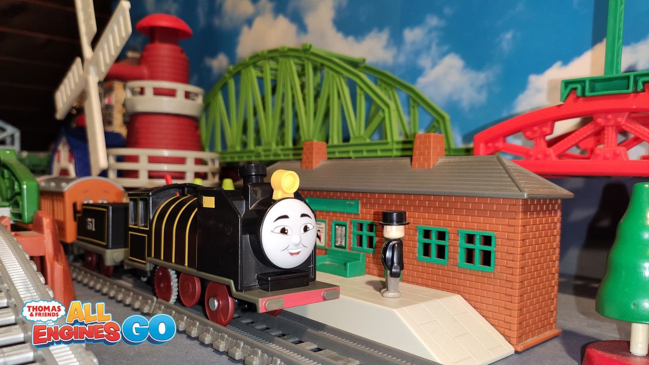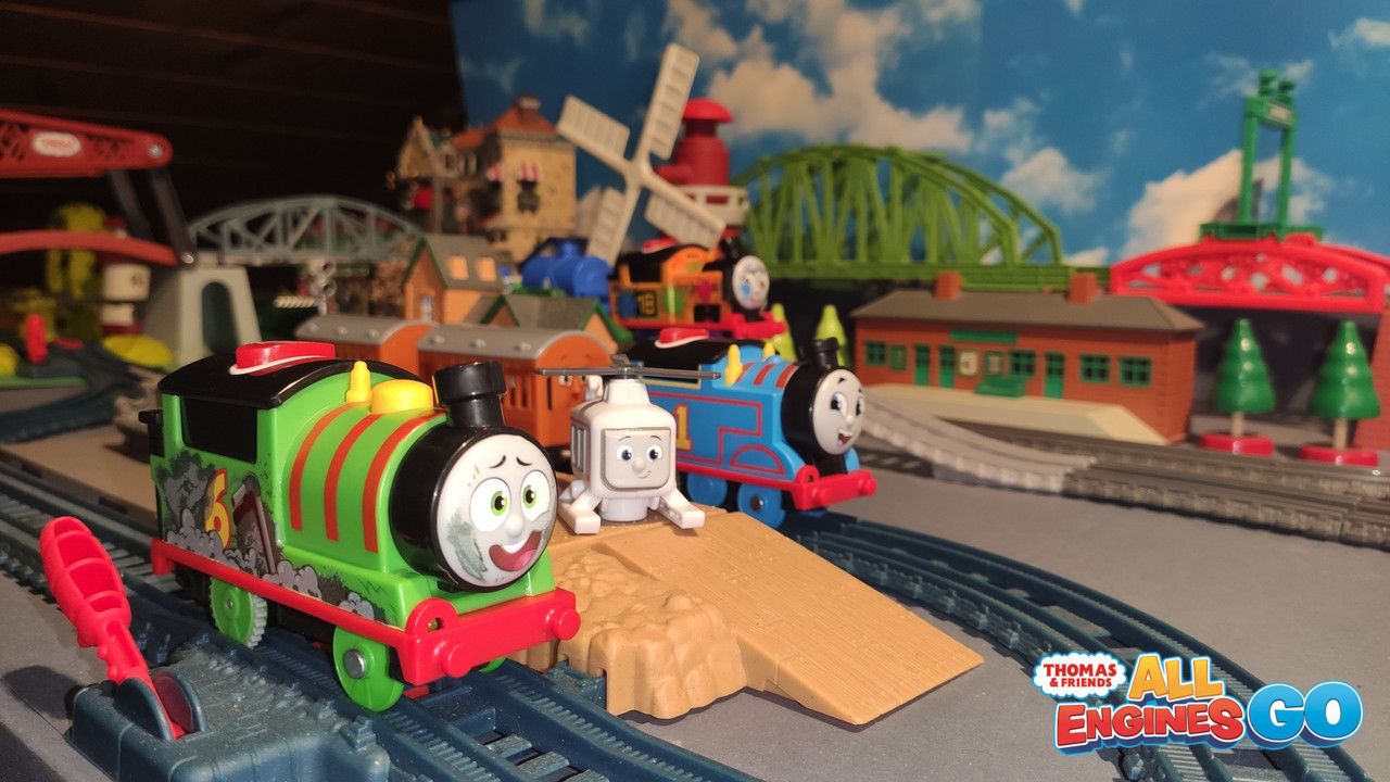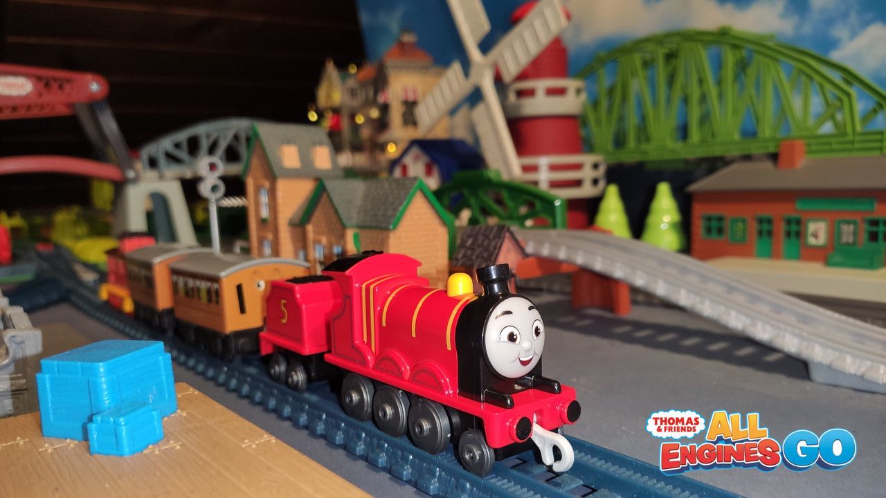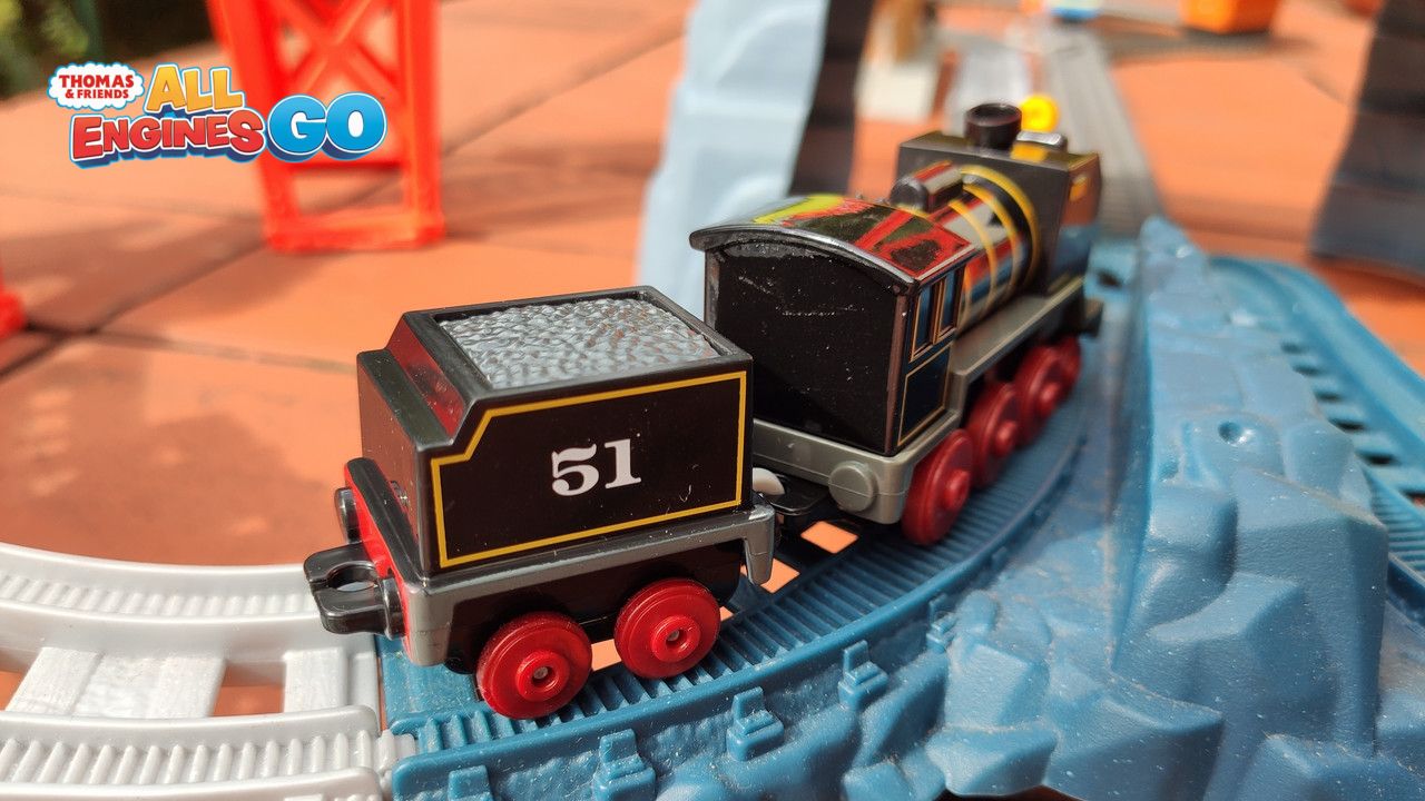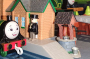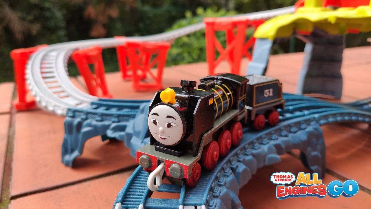 [font=sans-serif]Consequently, we will have two different speeds of passing through the loop: with Mattel, the high speed caused by launching the locomotive into the loop, and with Plarail, the normal speed of the engine itself (we saw that in Tomy's commercial on the loop set). But, operating Plarail's set, you don't get to choose whether you'll send the engine into the loop or not; the engine goes into the loop every time. It's the only way.[/font]