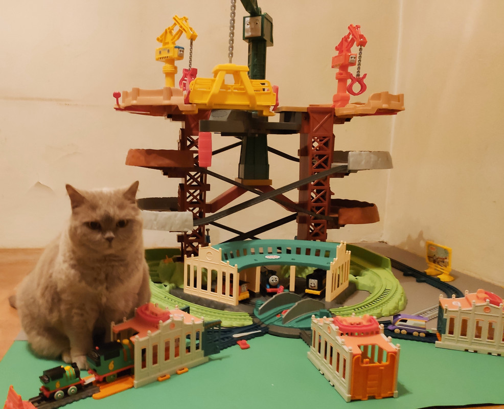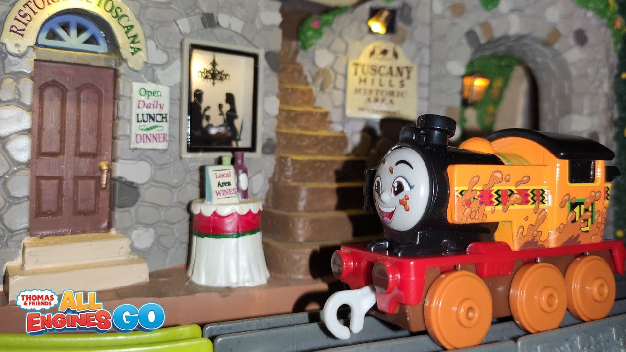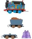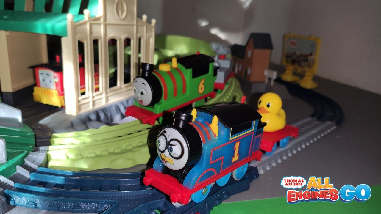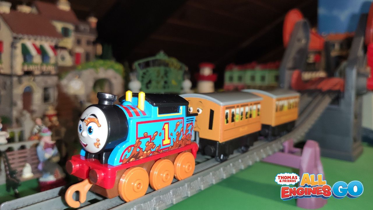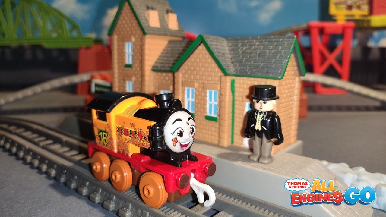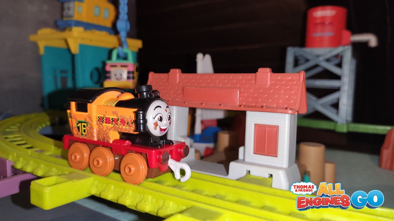 The black wheels really suit him. But I wonder why the recycling sign is printed only on one side of his hopper car. Looks odd.