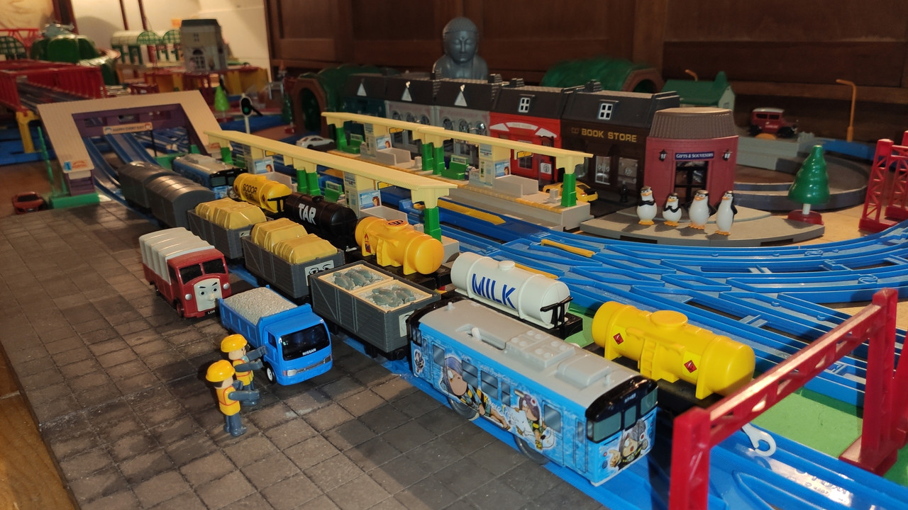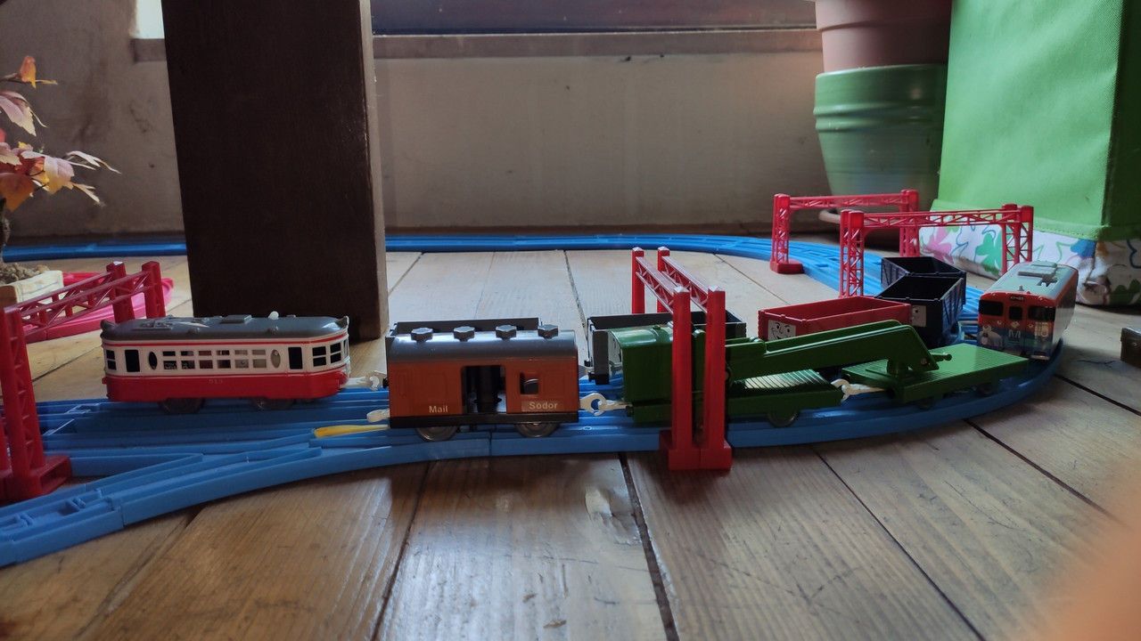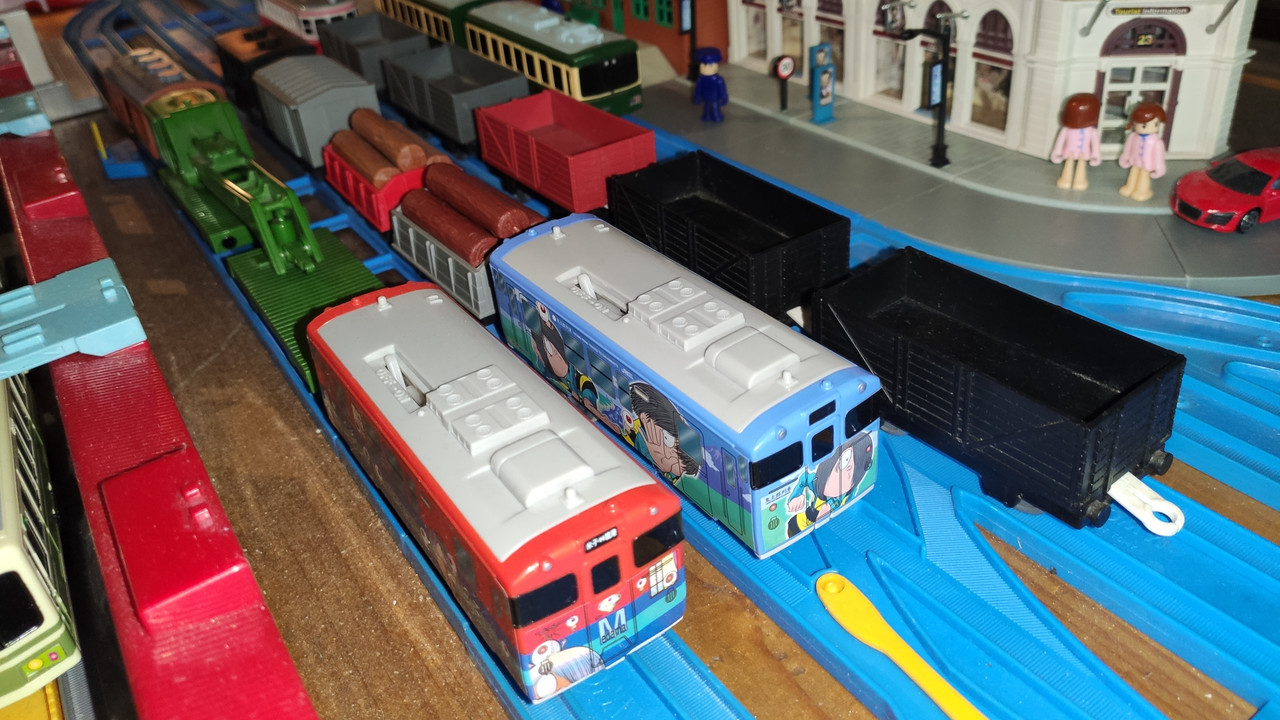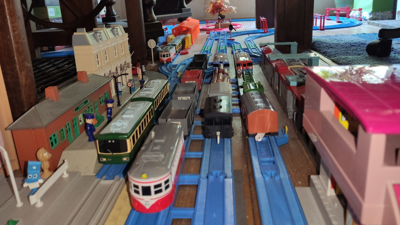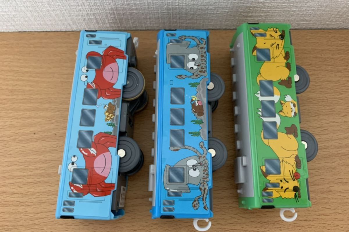 If you mean how many Kitaro/Medama trains, I don't really know how many they are either. I have two KF-04 (single motorized Kitaro car), the SC-01 train (Kitaro/Medama motor+trailer), and red/blue Father Eyeball motor car.