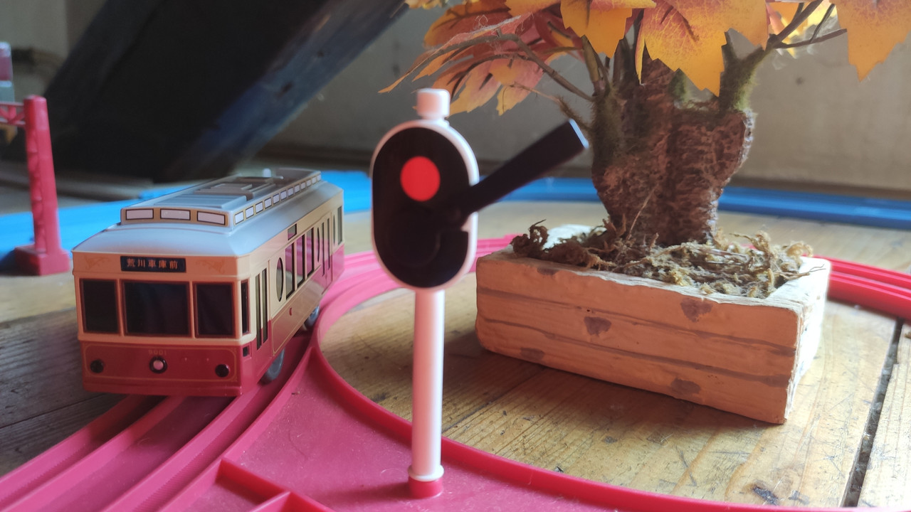 The new Enoden Plarail models have black windows, Blue Sky Train Keikyu's windows are light gray, etc. I like when they play with the colors in that way. On the other hand, this is certainly better than just holes for windows, as many trains have. And it's a colorful train, you just can't feel bad when you look at it or run it! 🙂
