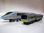 TrainsRawesome These are the best I could find of the couplings: It appears that the second car is permanently connected to the engine and has a power switch underneath. The third car looks to be detachable. I’m not entirely sure if it can run on blue track, but I don’t so because it seems a little smaller than Plarail. Keep in mind that the Poketrain range was made before Takara merged with TOMY, meaning it had no affiliation with Plarail / Tomica World. It used its own gray track system, shown below. Also, I found the cover of the RM Models magazine that held the sweepstakes (that being issue 89, released in January 2003). Interestingly, it also features a “silver“ version, but I haven’t been able to find any info on that.