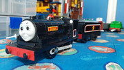 I had to do a bit of repairs to this one (to keep it short, I just swapped his chassis with Dodge's, but kept the half-axles part from Bert's). Hopefully, when I'm actually able to make my own online purchases, I'll swap both his and 'Arry's chassis with a HiT Splodge chassis each.