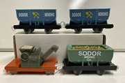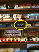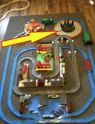 Super I am guessing....cornerback? That strange thing does look Plarail/Trackmaster with what looks like a front white hook coupling and with the smaller gray wheels maybe. At first I thought it may be the gray Hopper car but I now don't think so. Any other guessers out there?