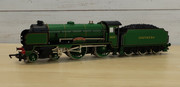 I am flabbergasted about this Limited Edition, Number 711 of 3000, 50th Anniversary Collection, Hornby OO scale, SR 4-4-0 Tonbridge Steam Engine with Commemorative collectors plate. Comes with the Official Certificate of authenticity which gives the production number which is also printed on the back of the collectors plate. I believe that this is the first time I have ever had an actual OO/HO scale engine in my hands. I had no idea how much weight these engines had and in this case the Tender weighs a lot. The details are marvelous. The side rods movements are spectacular and the hand rails are awesome. After all these years of only handling plastic trains this felt unusual in my hands. I think I am going to get one of those acrylic display cases for this to show it off as I don't have any tracks or layout to play with this. It is so beautiful that it should be out and not live in a box π