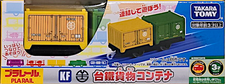 Most of the text on the boxes is in Traditional Chinese. In most cases the characters are the same as those used in Japan, but there are some differences between Japanese (Kanji) and the Chinese (Hanzi) characters used in Taiwan. Simplified Japanese kana (Hiragana – ひらがな, and Katakana – カタカナ) are generally not used except for the logos – e.g. Plarail プラレール. One obvious difference is that on Japanese boxes ‘set’ is セット - ‘setto’, whereas on these it is 組 – ‘zǔ’.