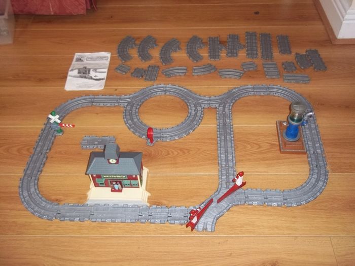 Mister No I suppose the station is from this set: Very nice station with a gimmick! Someone was selling it on adverts.ie and the description says: [size=small][font=Arial, sans-serif]For sale Thomas & Friends Wellsworth Station Electronic Playset, Take n Play[/font][/size] [size=small][font=Arial, sans-serif]In perfect, like new condition[/font][/size] [size=small][font=Arial, sans-serif]Set includes:[/font][/size] [size=small][font=Arial, sans-serif]Station[/font][/size] [size=small][font=Arial, sans-serif]Water tower[/font][/size] [size=small][font=Arial, sans-serif]Stop sign[/font][/size] [size=small][font=Arial, sans-serif]Crossing signal[/font][/size] [size=small][font=Arial, sans-serif]Level crossing[/font][/size] [size=small][font=Arial, sans-serif]Track pieces[/font][/size] [size=small][font=Arial, sans-serif]Plus some extra truck pieces (as seen in the pic)[/font][/size]