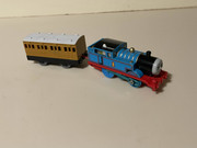 These knockoffs features a knockoff TOMY/TrackMaster Thomas engine made by LCF (Company who made <<Player World Go Go Go>> sets), Annie coach(es) and blue tracks. In the box shows Thomas with different sticker graphics and unpainted buffers, and Annie (Seems to be labelled <<Clarabel>> in the box) looks very close to the licensed toy. You may seen this Thomas before because Leokimvideo reviewed it!