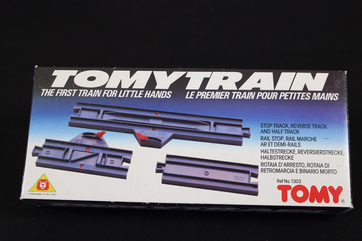 This took many, many tries to get working properly - Plarail cars do not really like to be pushed and both of the "automatic" switches I used rely on "tricks" of the molding to operate which the lighter, unpowered carriages do not always interact with the same way the weighty power cars do. Getting a Plarail car to collide with another without the couplers or bodies fouling and causing a derailment, especially when getting pushed across tricky track molding, was tough and the train also reacts differently with cars when hitting them from the slightly pointed front and the straight coupling bar sticking out in the back. When you see the siding that the mail cars get shunted to shift that was me adding more track to the end of the line because I had never actually gotten it to work that far before and realised the siding needed to be longer to hold all three and still let the locomotive hit the reverser. I used both the TomyTrains static full length reversers as well as the switchable half straight ones. TomyTrains is built around a similar reversing concept, although the loading gauge was larger than Plarail and it used magnetic couplers (there were also magnetic couplers sold as Plarail accessories, and I have played with those and my other Round-Trip EF66 before).
