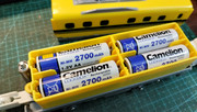 You will need to insert 4 AA batteries in the middle car, preferably rechargeable ones in case of random voltage drop while in use. (Trust me, it took me 2 months to finally test the train out)