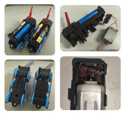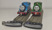 Fellow scratchbuilder BumBin Creative, who originally used speed control dials built into their locos, found this interesting way to upgrade to RC that could also work for Plarail/other existing battery trains. Like Mr. Motorman, this module operates on RF with different speeds (sadly not in both directions) and the transmitter and receiver have to be "paired" before use. Unlike it, the controls look to be more responsive and can apparently be programmed using the three-button "car door" transmitter. Rather than doubling as a battery, the receiver is a separate board with two input and two output wires and can work at a voltage of up to 24V (!).