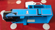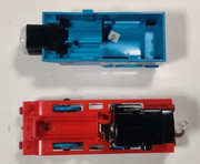 Production of almost all Thomas Plarail engines (at the time only Thomas, Henry, and James) moved from Japan to Thailand around the beginning of 1995 after all three characters got a new print run of boxes and production run of trains in 1994 (this was the first and only Japanese run of James and the second box printing for the other two) to tide them over until toolings were updated and Thailand production began. The latest Japanese production Thomas-series engine I have is a Thomas from December 1994, with all three engines reappearing in Thailand production by at latest July (probably June) 1995. Brass battery contacts were the norm on all Japanese-produced trains, and similar brass-to-silver changes occurred on other Tomy toys that changed production from Tomy's Japanese factories to their expanding Thailand complex. Plarail began being produced there in 1989, two years after it initially opened, and most Plarail production had moved there by 1994 or so. The last Thomas-series products made in Japan were early B/O Tomica Berties (B/O Tomica was all handled in Japan until 1996 or so) and the panorama bag released in 1995. Tomy began moving B/O Tomica production out of Japan in 1996 (and renamed it Motor Tomica at the same time) when they closed three of their Japanese factories.