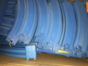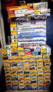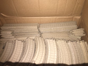 The original three cardboard boxes I used for storing TOMY and TrackMaster track, road, risers and bridges were from 2009 and really didn't age well, and were also a bit longer than necessary for their contents. In addition, I never organised them and just lumped all the parts together. Yesterday, I emptied the worn out boxes and threw them out after transferring to (much) better ones. This time, I grouped each identical/related part into bunches and arranged them in order of size and precedence. For example: slopes, bridges and large points are at the bottom while straights, curves and normal points are near the top. If I ever decide to tie the bundles, I'm thinking to use two zip ties at the ends of each part group. Unlike rubber bands, they keep their shape and should (hopefully) last a bit longer. I forgot TrackMaster 1 risers can't be stacked the same way TOMY ones can and instead rely on two-three different heights, so they had to be stored differently. To avoid confusing "turntable" (diamond connector) straights with normal ones, I now store them where the turntables are and not with the other track pieces. All in all, I'm quite happy with these "new" boxes and how my organising turned out.